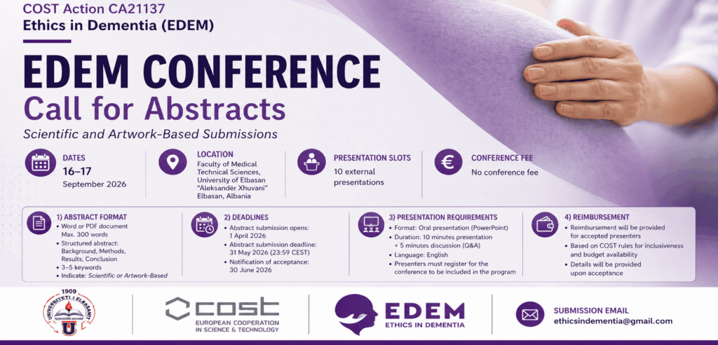 EDEM will work to promote dignity, autonomy, and quality of life for people with dementia and reduce burnout and moral distress for caregivers. By fostering international collaboration we will improve the quality and homogeneity of dementia care across Europe.
